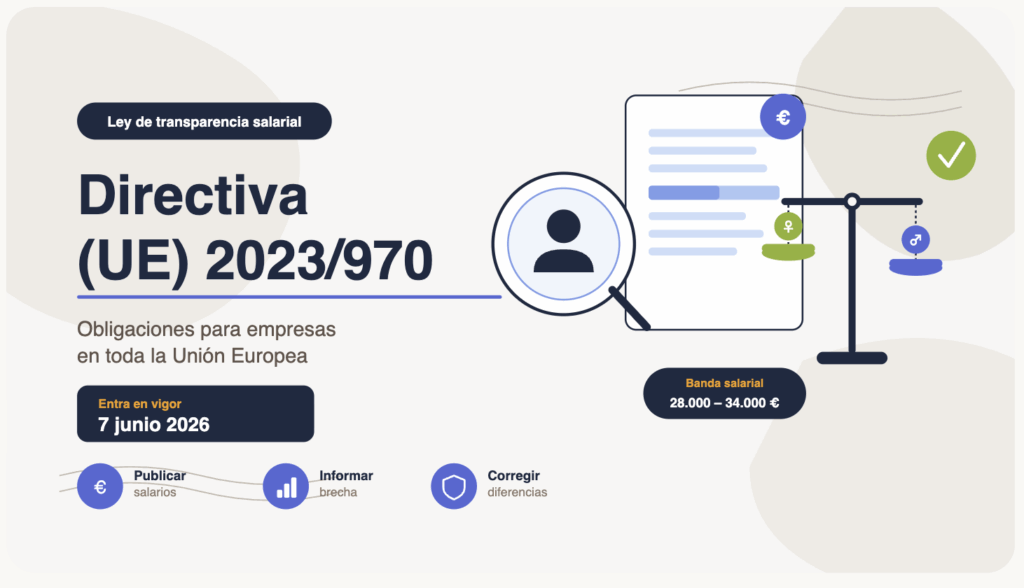 La Directiva (UE) 2023/970 entra en vigor el 7 de junio de 2026 en toda la Unión Europea. A partir de esa fecha, cualquier empresa —ya opere en España, Francia, Italia, Portugal o cualquier otro Estado miembro— deberá cumplir un conjunto de obligaciones concretas sobre cómo publica salarios, cómo informa a sus empleados y cómo actúa cuando detecta una brecha retributiva injustificada.